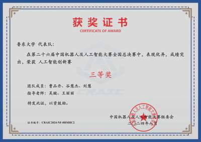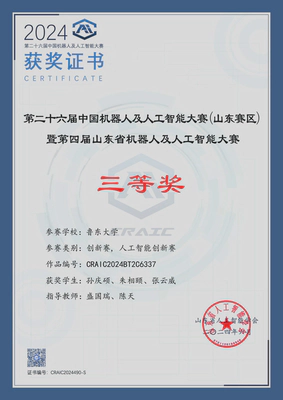 2024年8月25日,第二十六届中国机器人及人工智能大赛全国决赛(宜兴)圆满结束。鲁东大学信息与电气工程学院学生代表队在本次比赛的人工智能创新赛中表现优异,荣获国家级二等奖一项、国家级三等奖两项、省赛区三等奖一项的荣誉。
